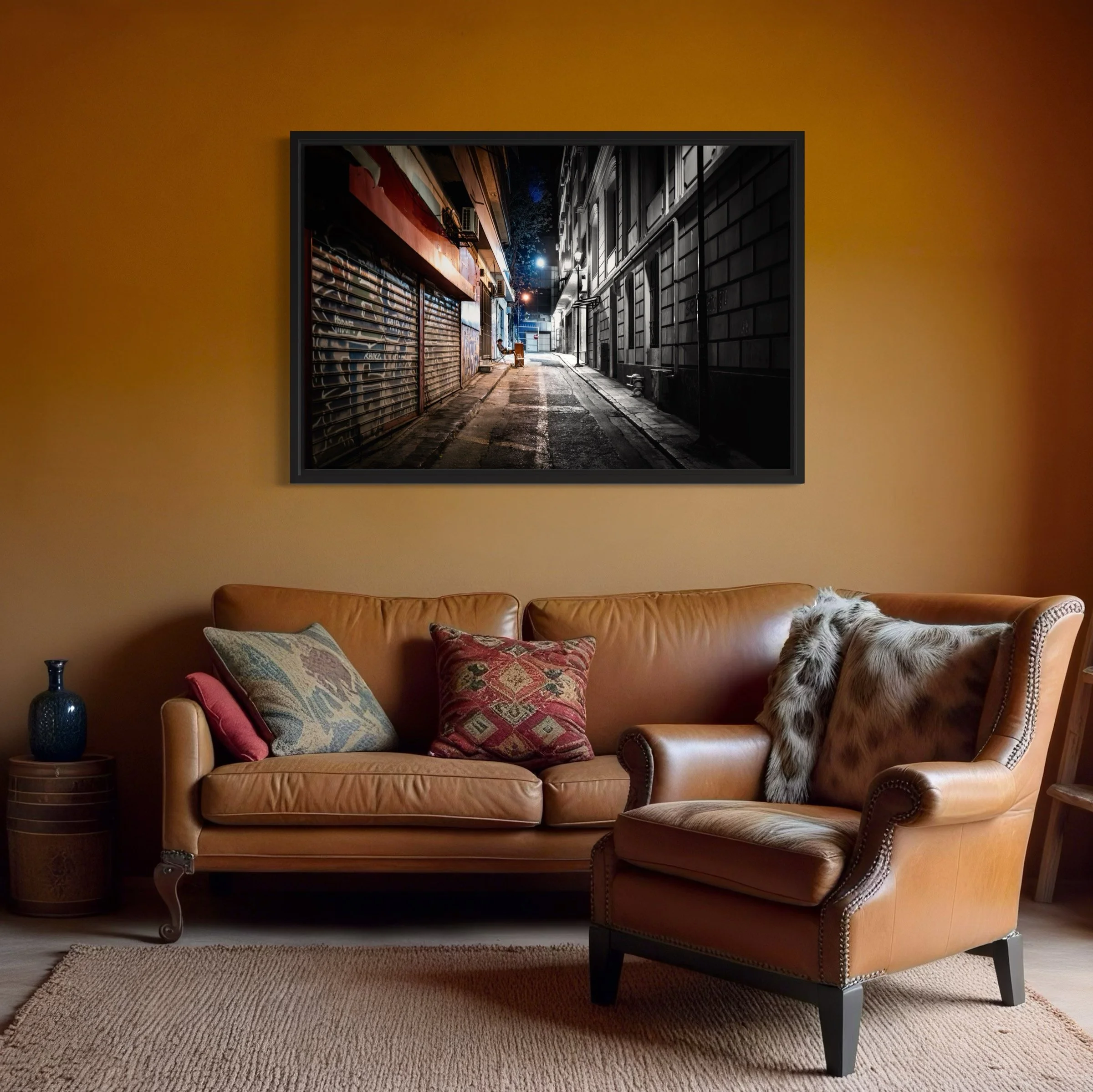 Tableau Gallery Print accroché au mur dans un salon cosy